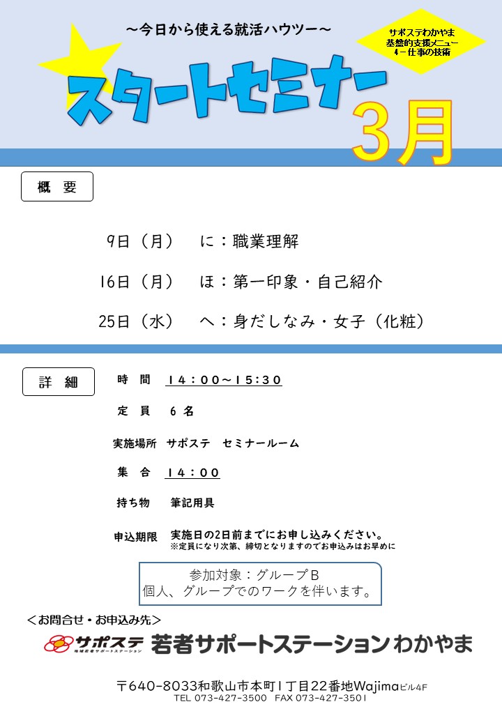 | 開催場所 | サポステわかやま セミナールーム |